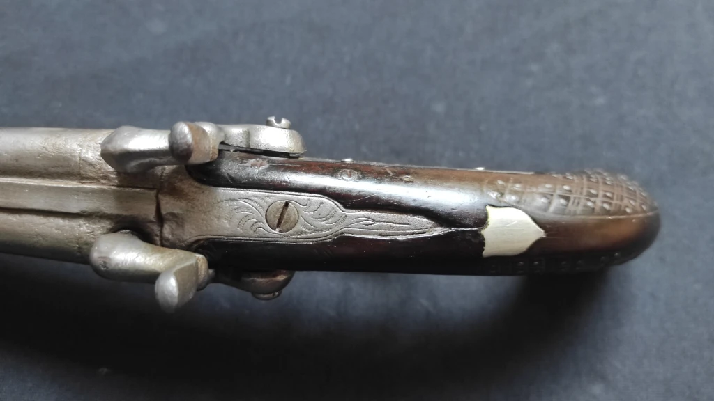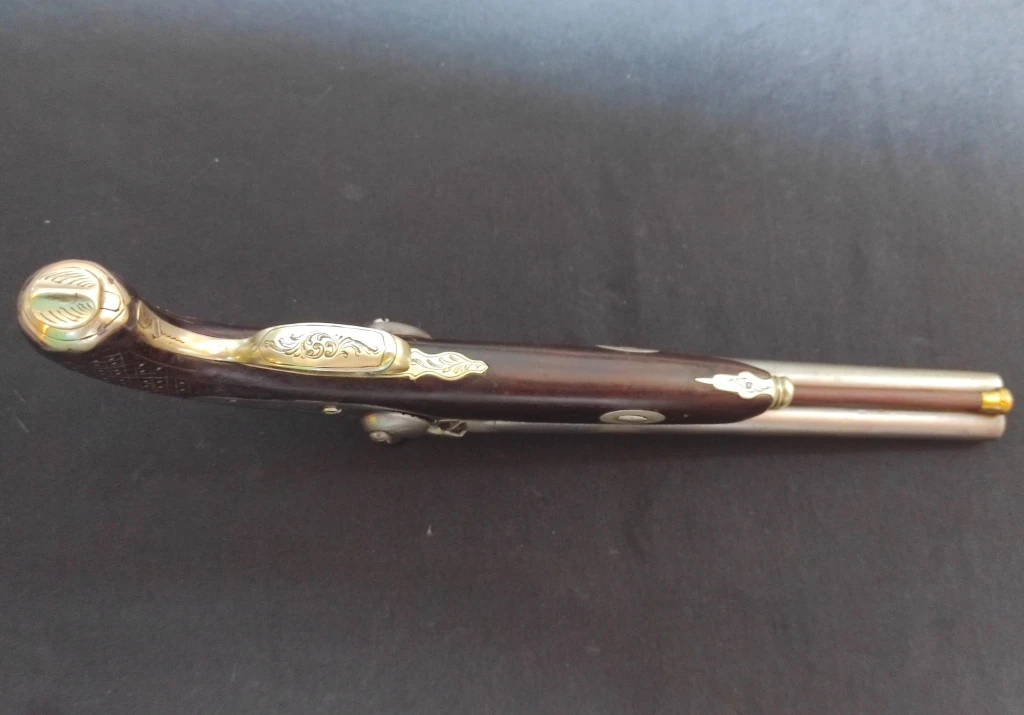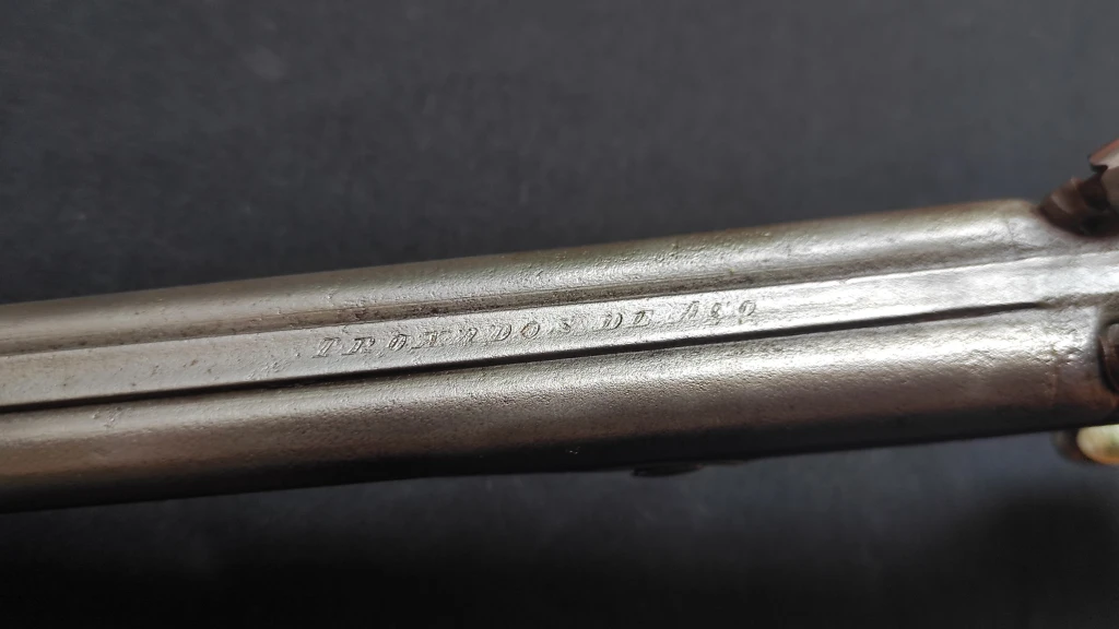 Pistola de dos caños de origen belga con llaves de acción trasera y perfecto estado de funcionamiento...
