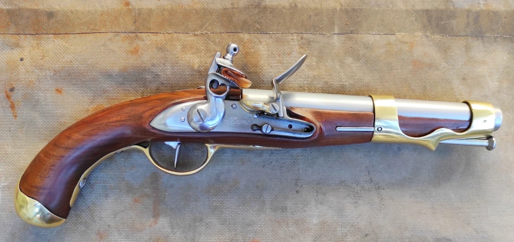 Presentamos nuestro modelo de Pistola Francesa 1763.Copiada directamente de una pistola Original de nuestra propiedad, logramos esta réplica bellísima, 100% construida a mano con materiales de primera calidad.En la publicación ustedes pueden ver (en primer lugar), la réplica de nuestra fabricación.A continuación, la réplica junto a la pistola Original 1763 (la original tiene la culata de nogal más oscuro).Esperamos que les guste!! Fue muy divertido construirla y consideramos que se trata del modelo de arma de chispa militar, más hermoso y equilibrado.